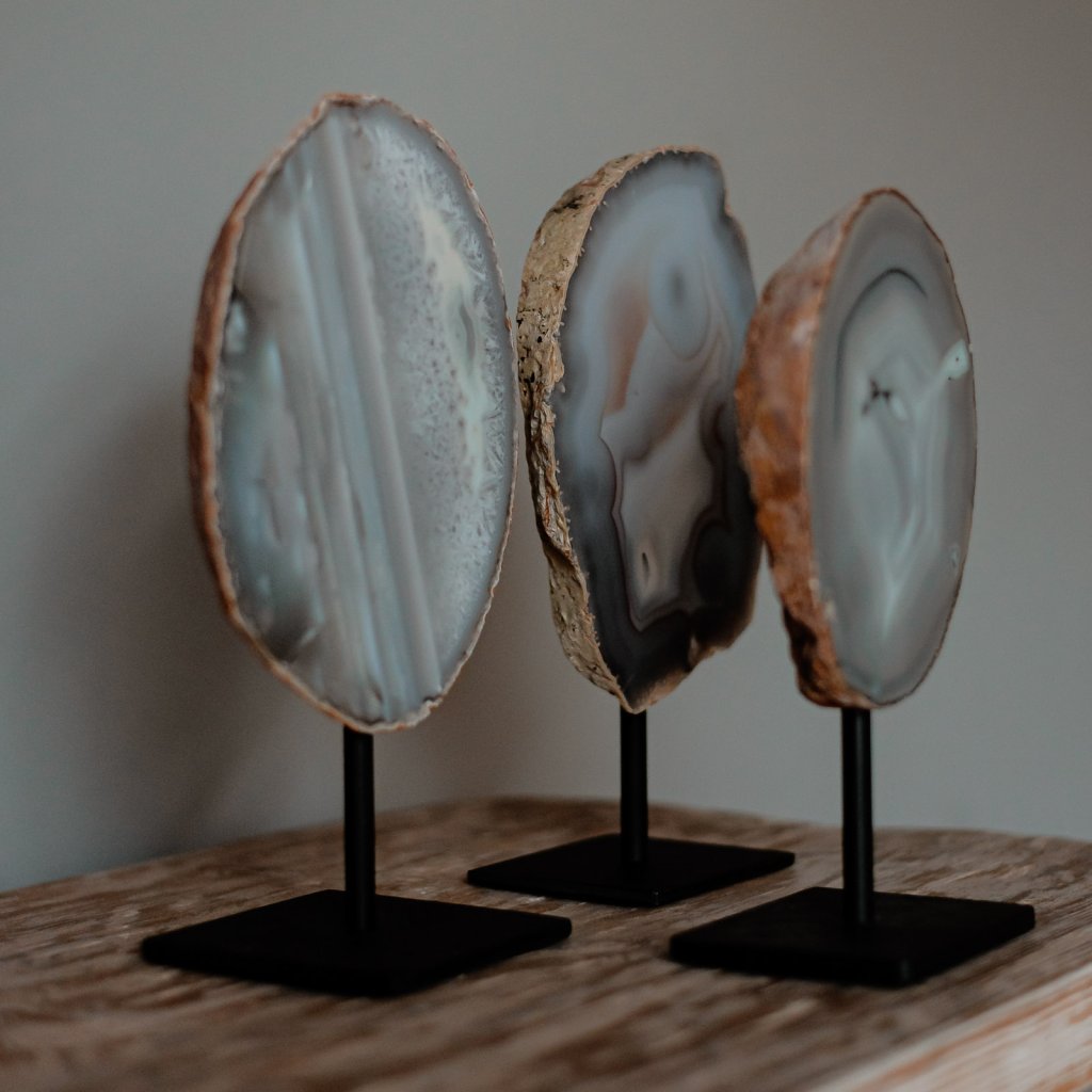 Fotky jsou ilustrační a každý kus achátu je naprostým originálem. Liší se tedy vzhledem, velikostí i váhou. Ale energii mají všechny stejně nádhernou.