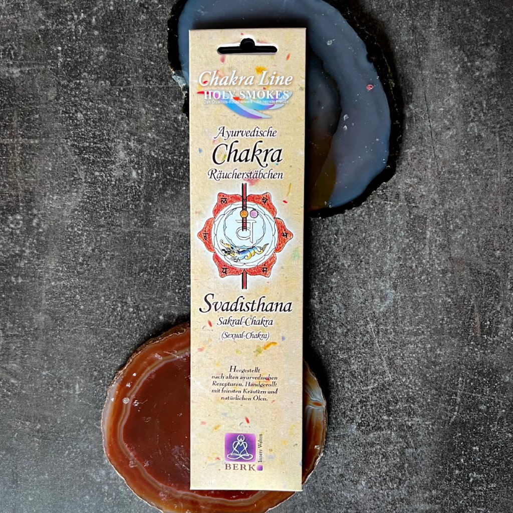 - 2. Čakra – Sakrální (Svadhisthana) Ponoř se do světa tvořivosti a emocí. Sakrální čakra, umístěná v dolní části břicha, je centrem naší tvořivé energie a sexuality. Vonné tyčinky Svadhisthana ti pomohou probudit vášeň a radost ze života. Představ si, jak se kolem tebe rozprostírá vůně exotických květů, které probouzejí tvoji tvořivost a zvyšují citlivost k emocím. Koupit jen tuto sadu vonných tyčinek.