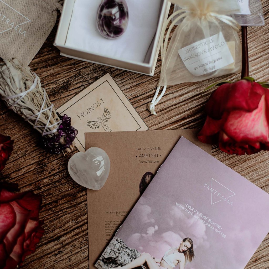 - tištěná brožura - kompletní průvodce pro práci s yoni egg včetně 3 pozic yoni jógy,