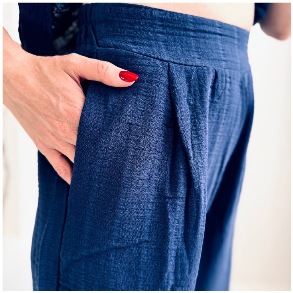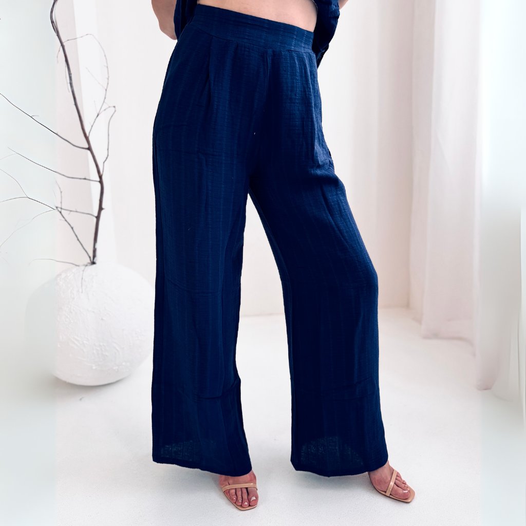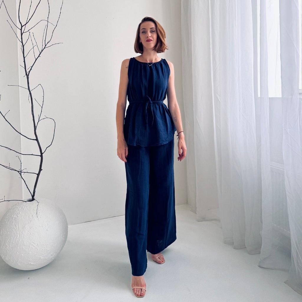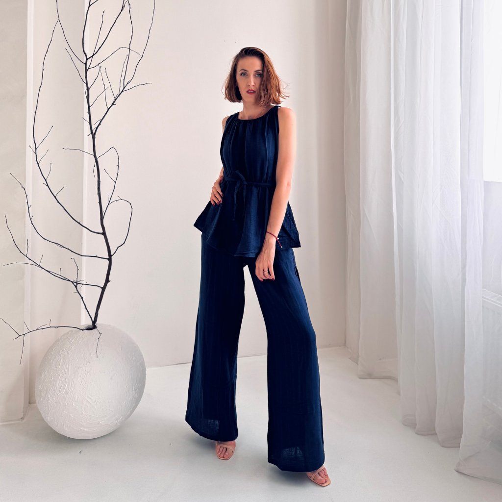 Kalhoty Desiria jsou jako rozvlněné moře – proudí s tebou. Jejich lehkost a šířka ti dovolí kráčet, kamkoliv tě intuice vede. Ať už je zkombinuješ s topem Desiria, nebo úplně jinak, vždy budou vypadat, jako kdyby k tobě patřily odjakživa. Obleč je, když chceš působit klidně, elegantně a přesto nezapomenutelně.
