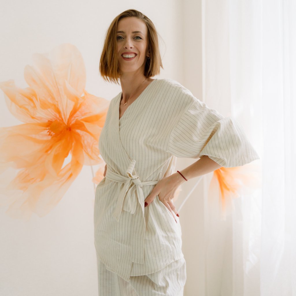 Noor je komplet, který mluví jazykem těla. Lněné kimono s volným střihem a kalhoty v tónu lehkosti tě zahalí do pohodlí a stylu. Ideální na rituál, večerní sedánek ve městě nebo cestu do zahraničí, kde se nechceš ztratit v davu. Kombinace 50 % lnu a 50 % bavlny působí jako pohlazení – pro tělo i pro duši. Stylizuj ho s páskem, šperky nebo bosky – pokaždé budeš vypadat jako královna, která má styl.