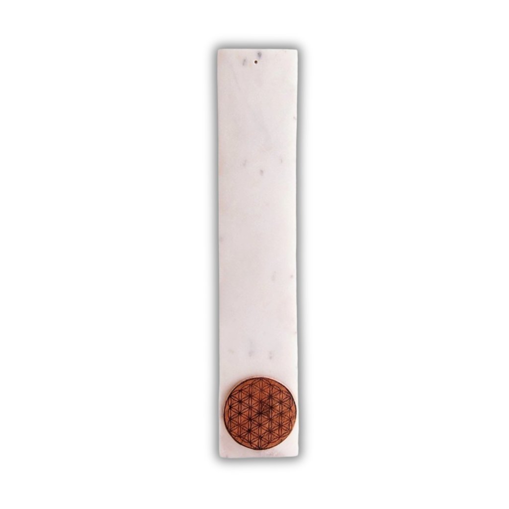 Vytvoř si prostor pro klid, meditaci a každodenní rituály s tímto elegantním stojánkem z pravého mramoru. Dřevěný symbol Květu života probouzí harmonii a posvátnou geometrii, zatímco jemný kouř tyčinky ti pomáhá naladit se na vnitřní ticho, záměr nebo léčivou chvíli se sebou samou.