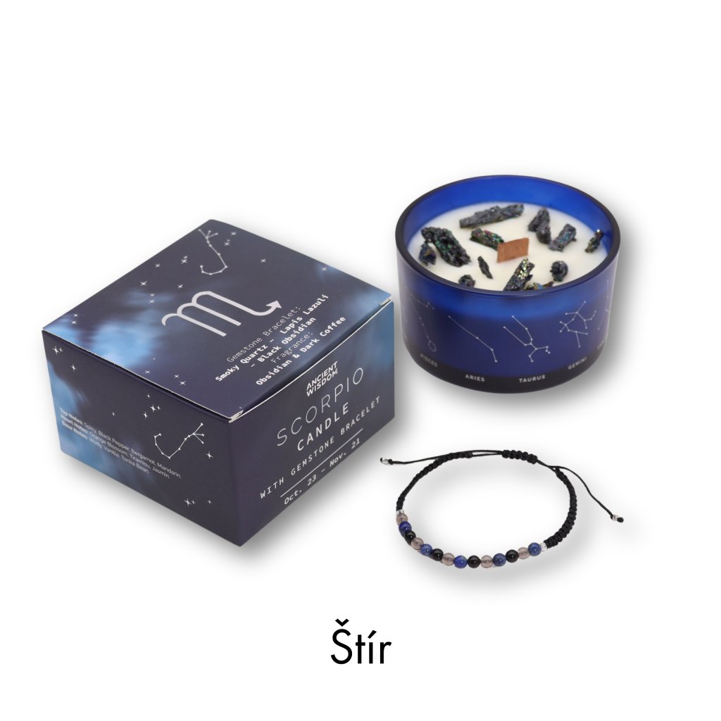 Spoj sílu drahých kamenů, krystalické čistoty a horoskopu do jednoho rituálního momentu. Každá svíčka je navržena přesně pro tvé znamení. Obsahuje nejen jedinečnou vůni, ale i krystalový náramek z minerálů, který podporuje tvé silné stránky a harmonizuje energii tvého astrologického archetypu.