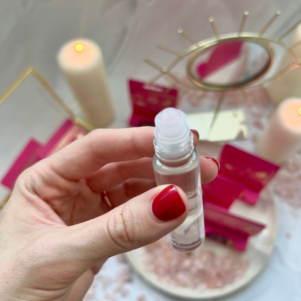 Každý roll-on ukrývá růženín, známý pro svou schopnost inspirovat a podporovat lásku ve všech jejích podobách. Tento růžový drahokam hojí stará zranění, zmírňuje stres a probouzí jemnou, vyživující sílu srdce. Nanášej esenci na oblast hrudníku, zápěstí nebo krku a nech její energii rozkvést ve své aule. Zavři oči, nadechni se... Co kdyby se právě teď začaly plnit tvé nejhlubší touhy?